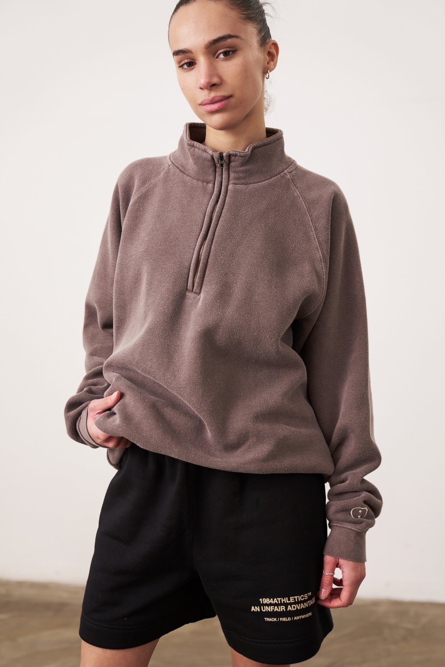 Essentials Vintage Washed 1/4 Zip Sweatshirt - Cocoa