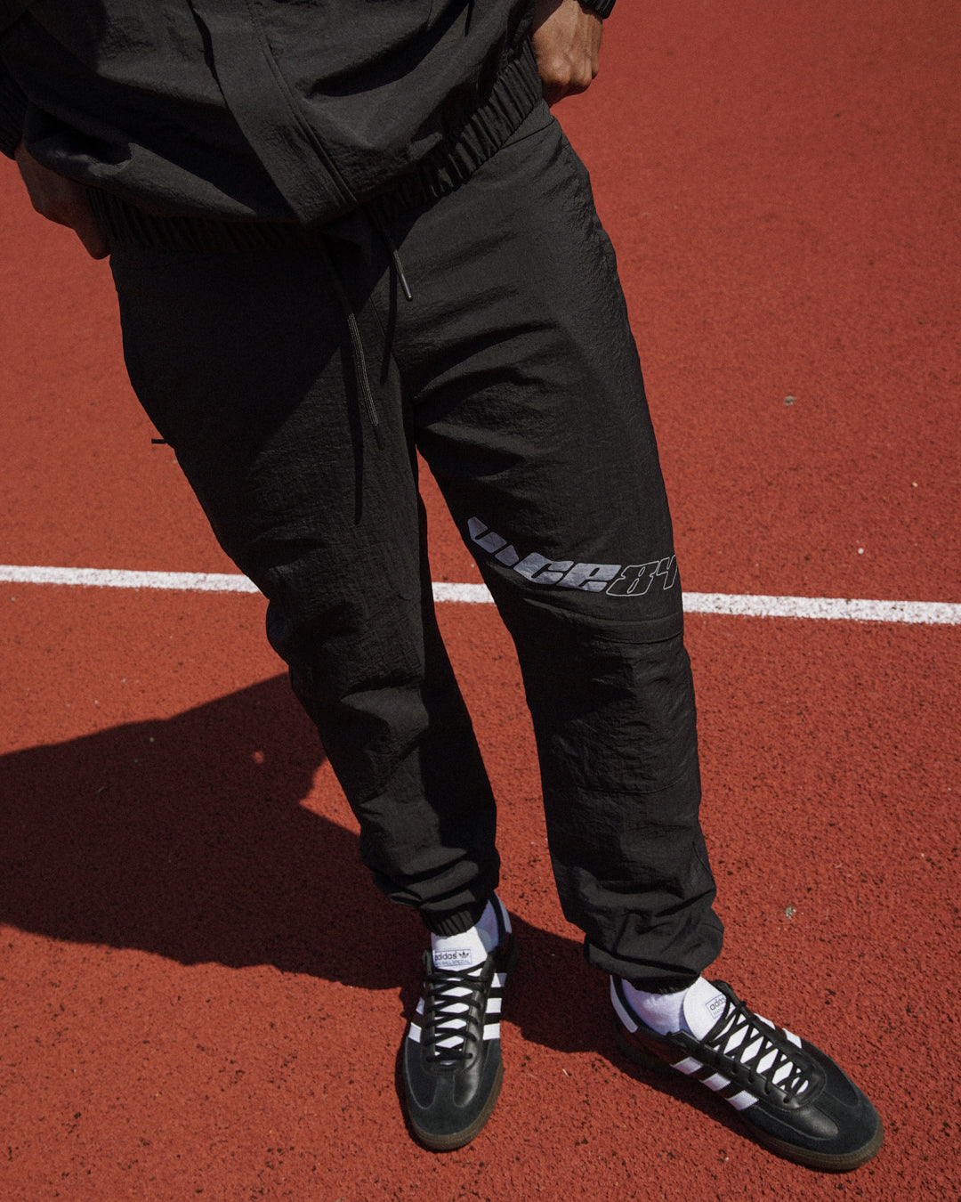 Vice 84 'Reflective Racer' Nylon Track Pants - Black