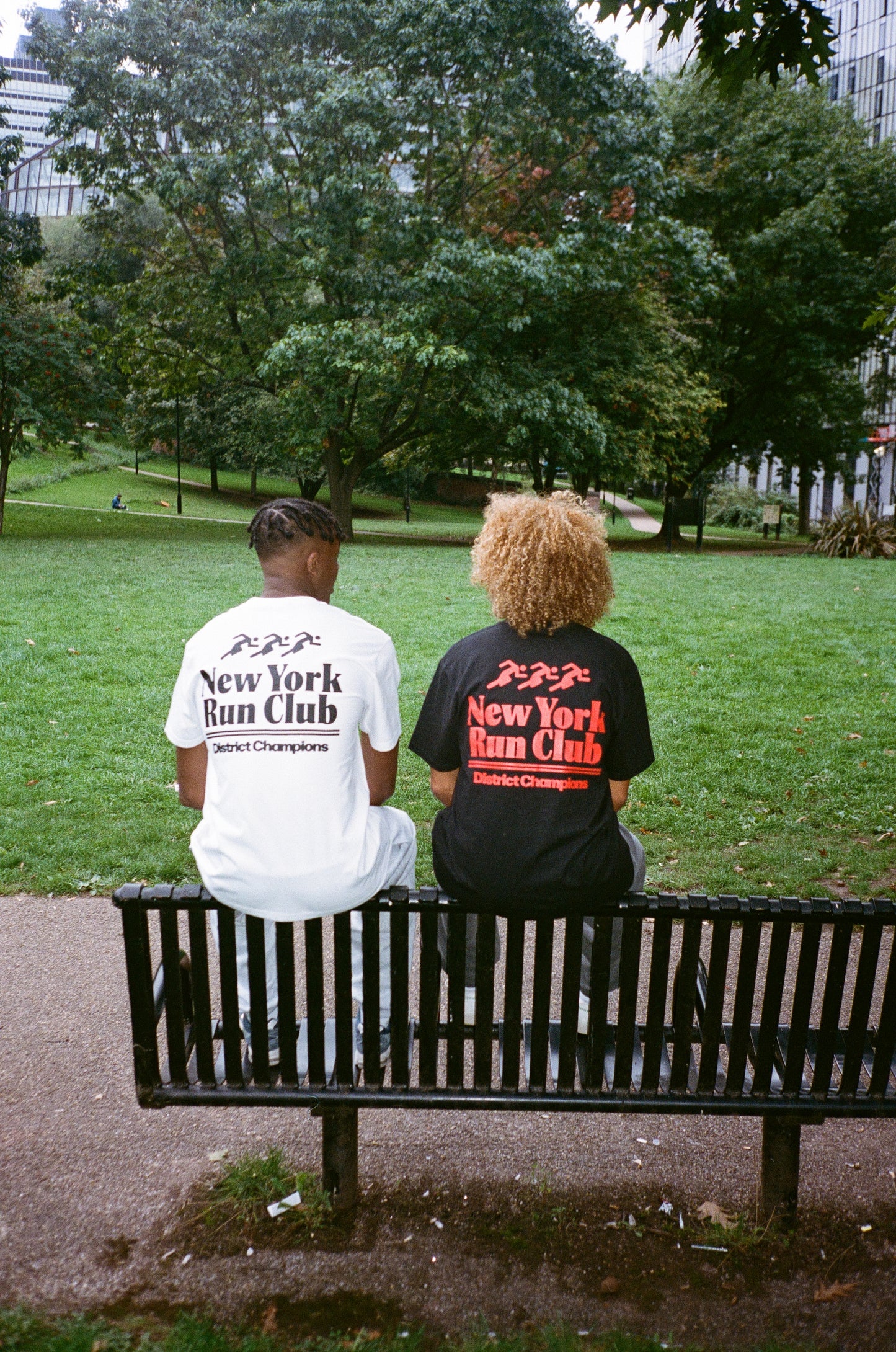 White tee with red NYC Running Club inspired front & back screen print, can be worn with our UN:IK Essentials vintage washed charcoal joggers for a casual but cosy sporty street style fit.