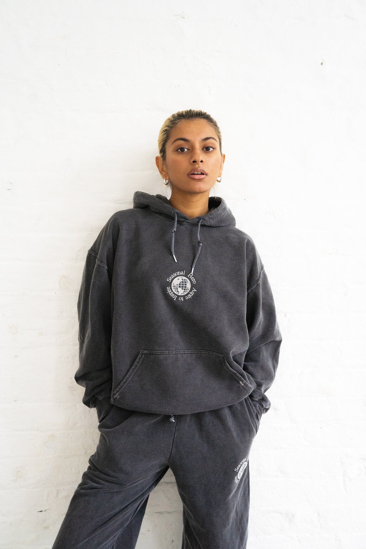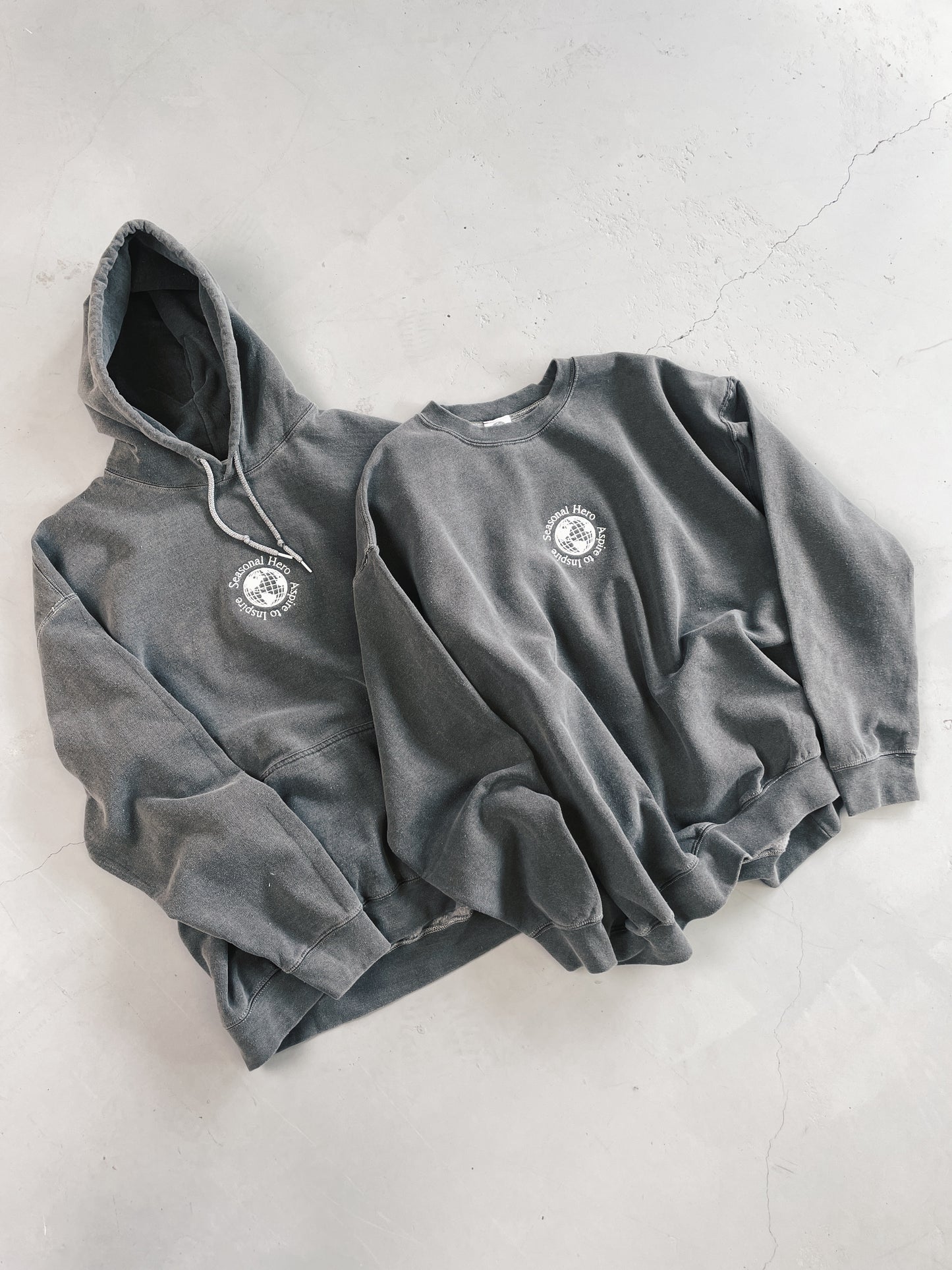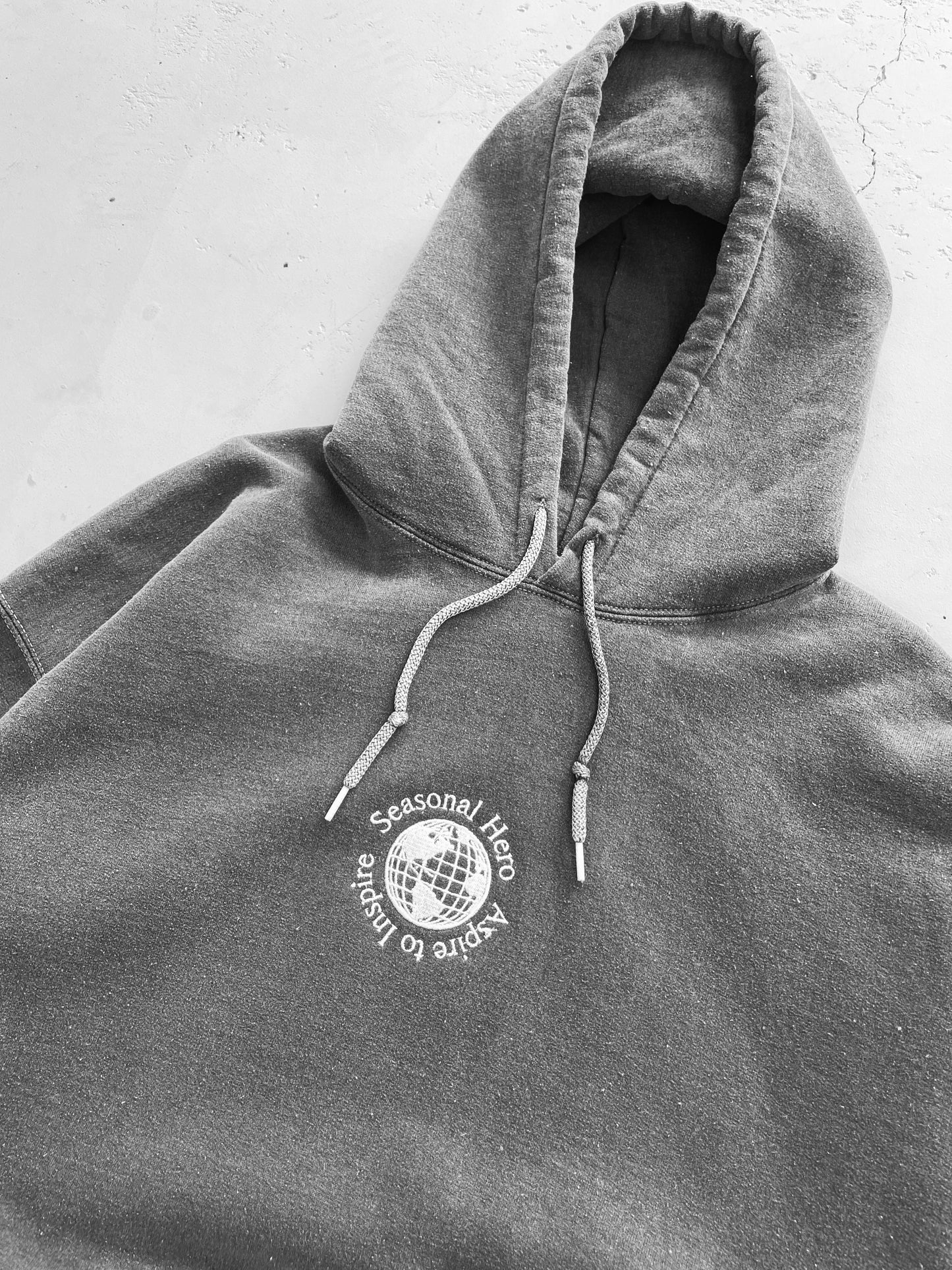 Seasonal Hero 'Aspire' Embroidered Vintage Washed Hoodie - Charcoal