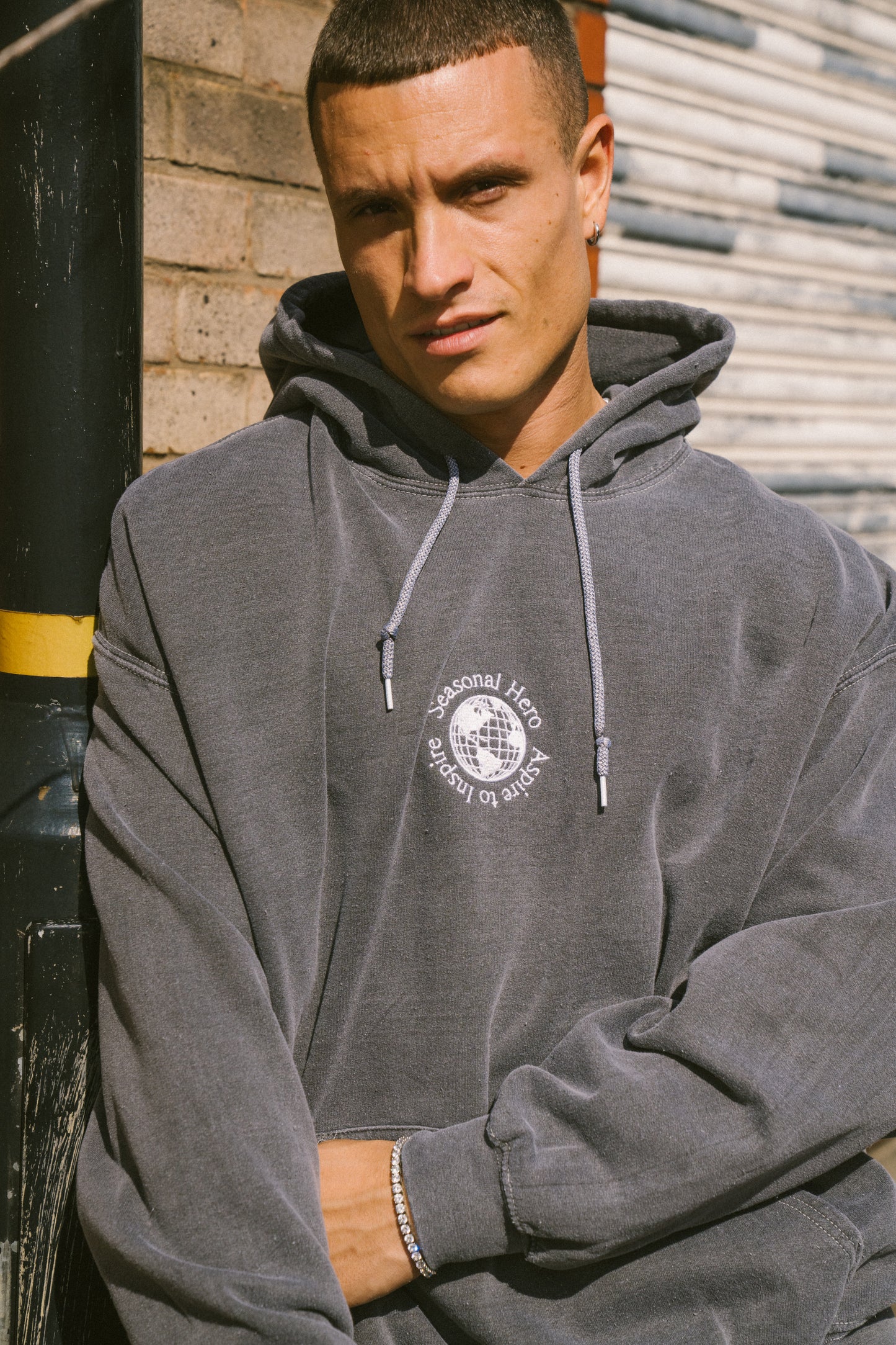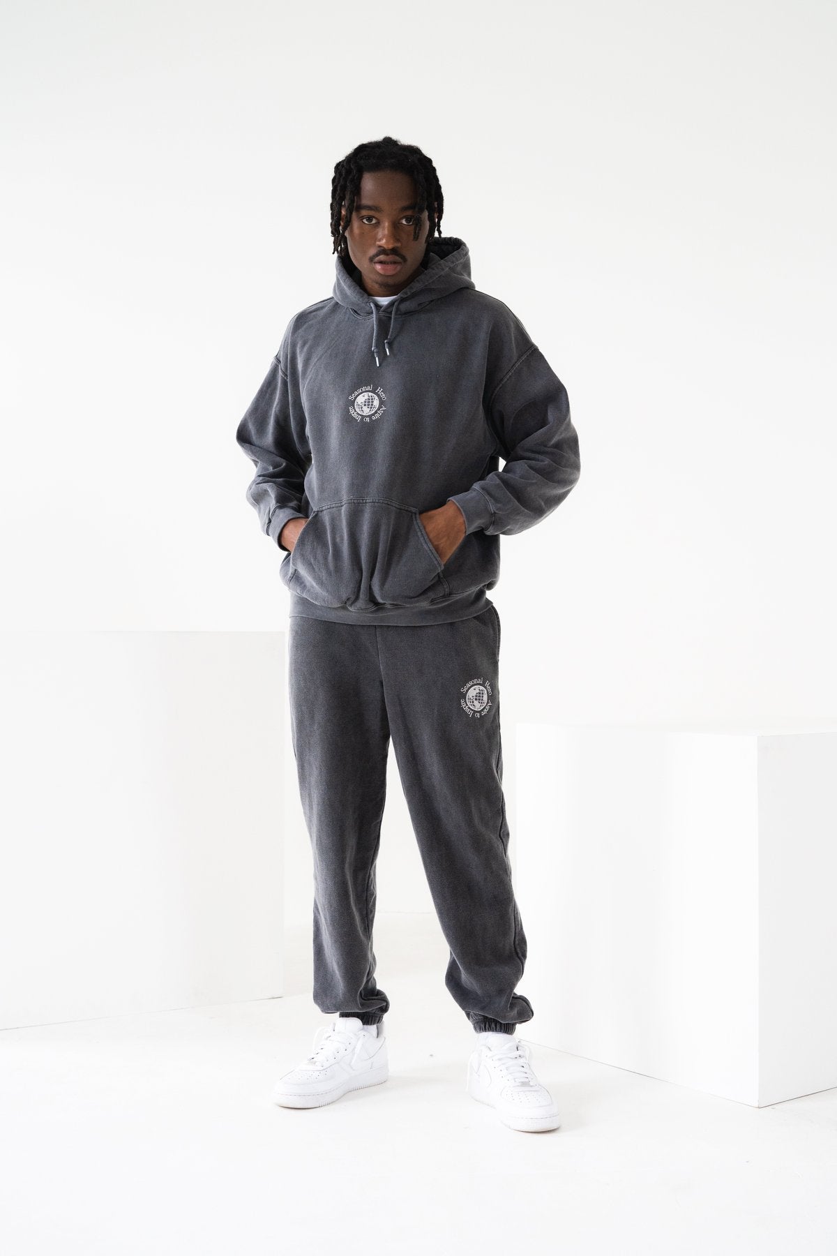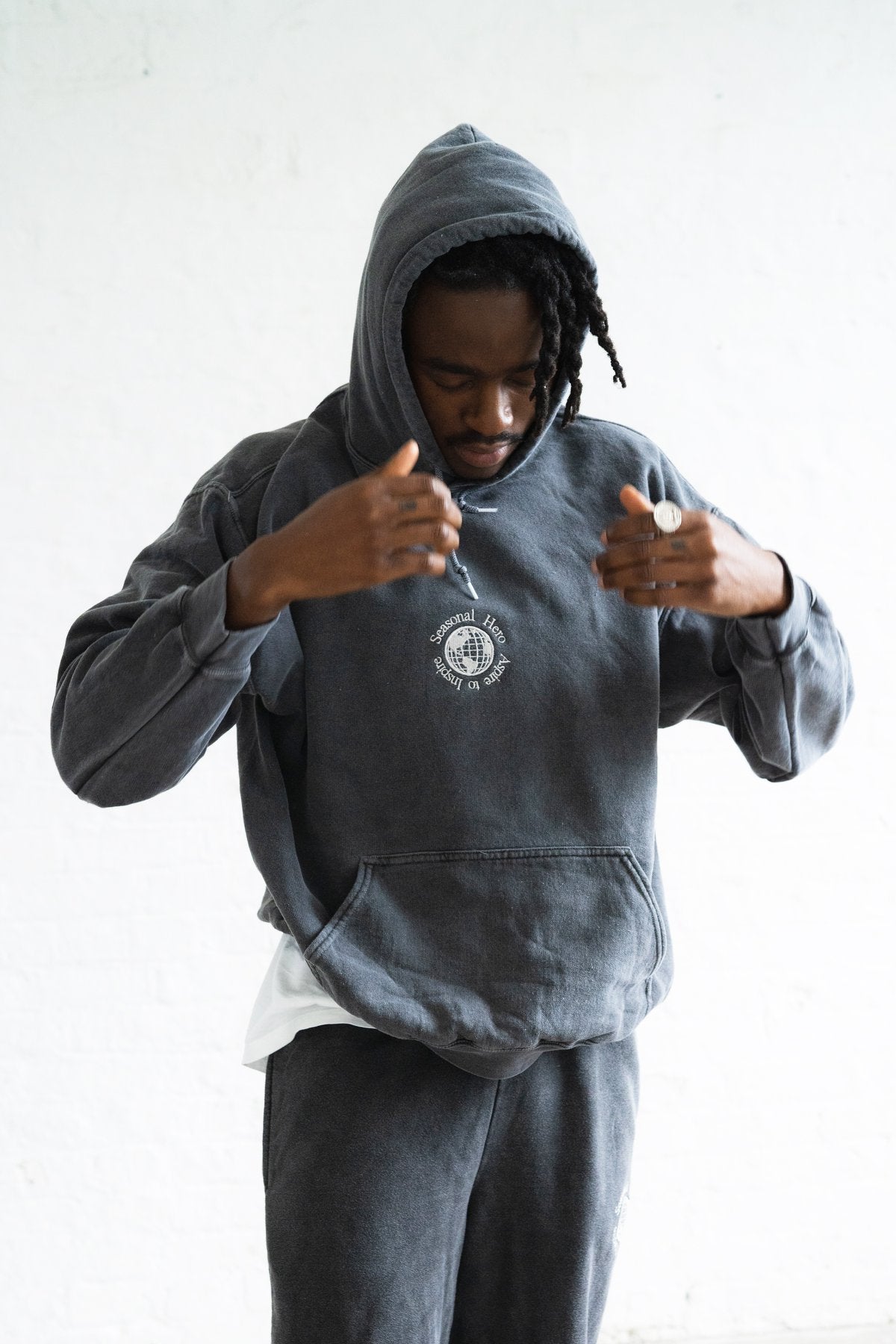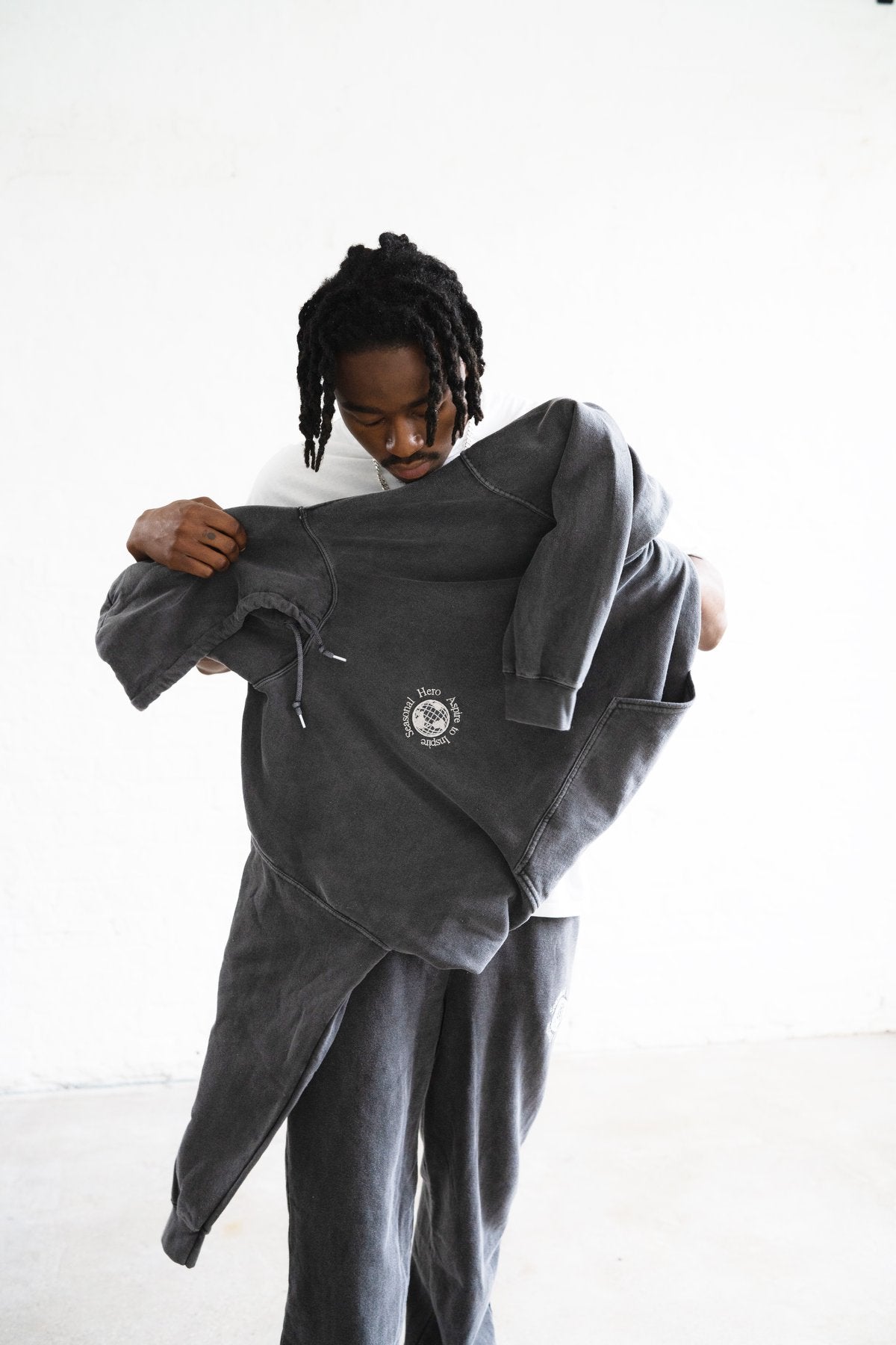 Seasonal Hero 'Aspire' Embroidered Vintage Washed Hoodie - Charcoal