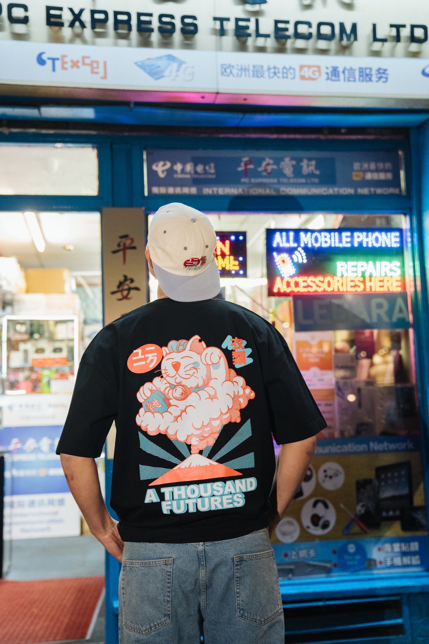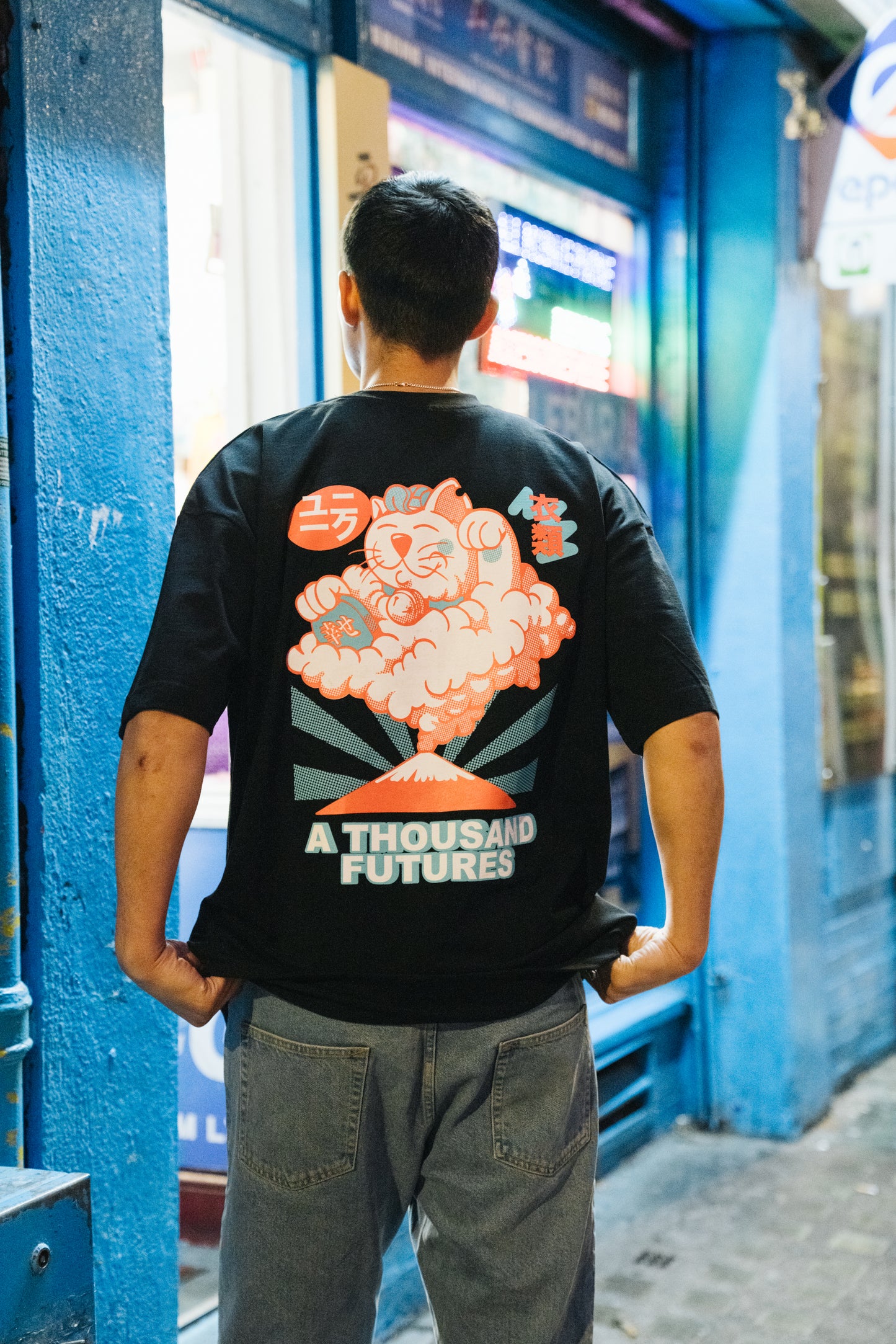 A Thousand Futures 'Lucky Cat' Tee - Black