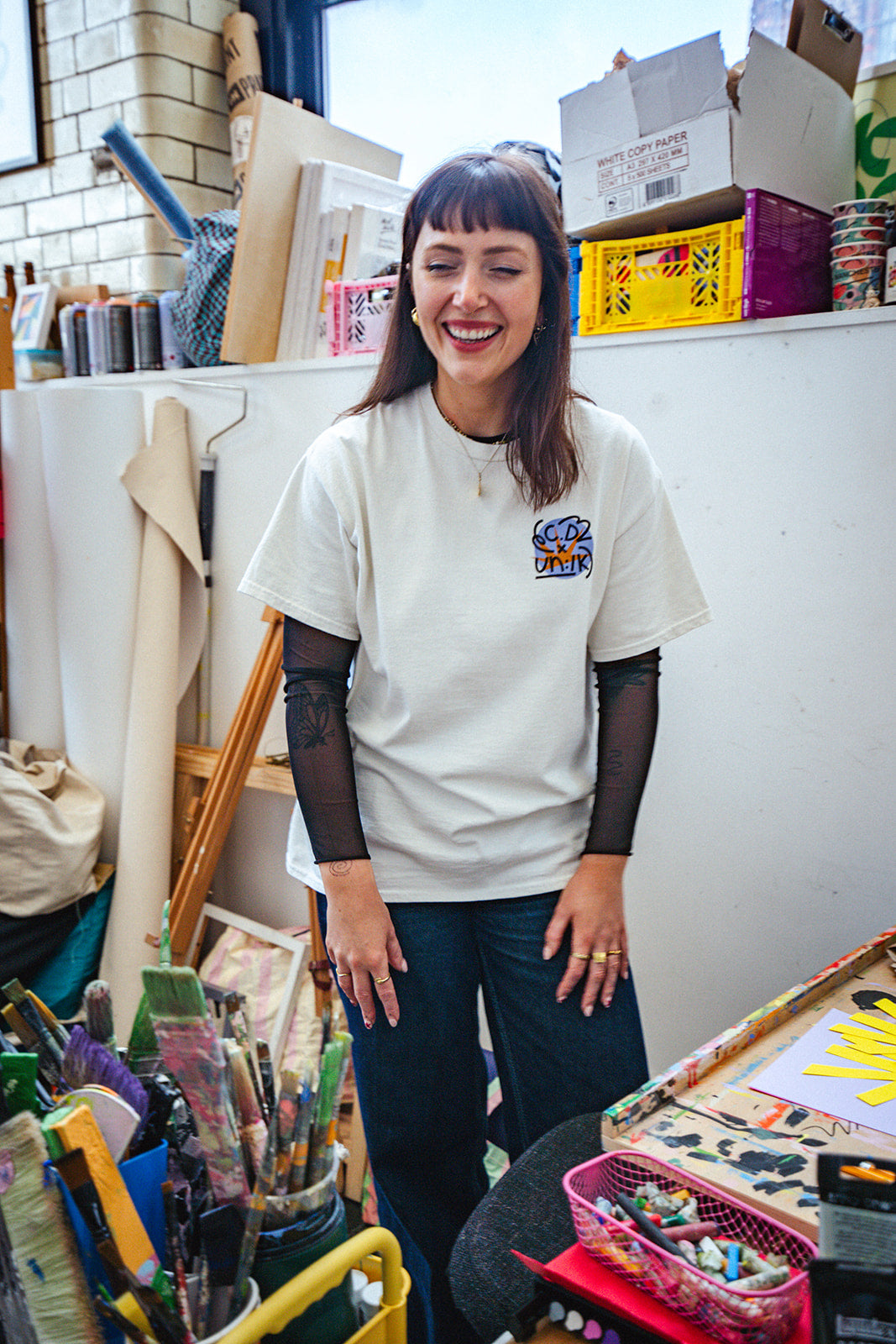 We are proud to present our latest collaboration with Caroline Dowsett, an artist, painter and maker from Manchester. Creating pieces from shapes, colours and lines. Inspired by feels, sounds, words and everyday.