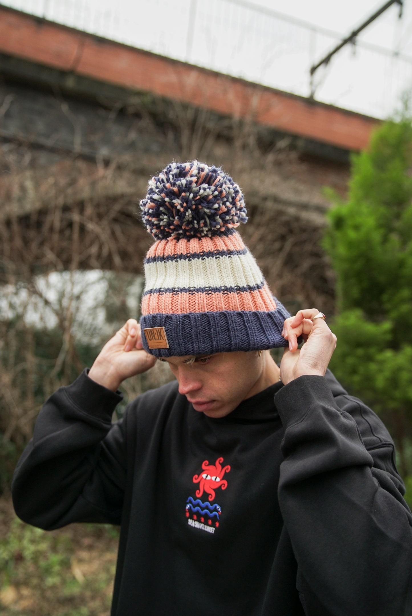 Essentials Label Bobble Hat Beanies - UN:IK Clothing