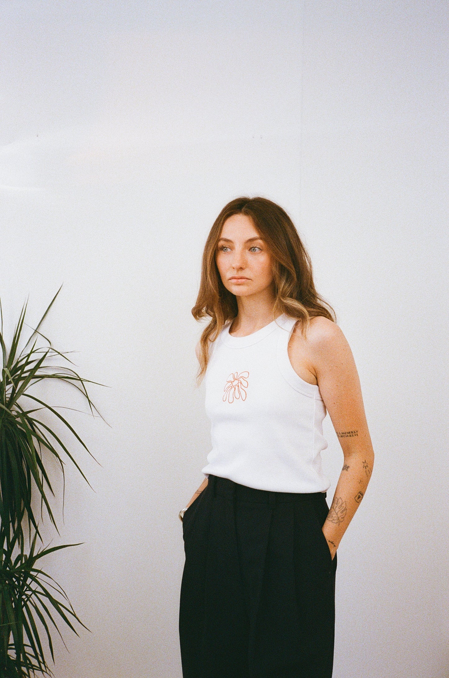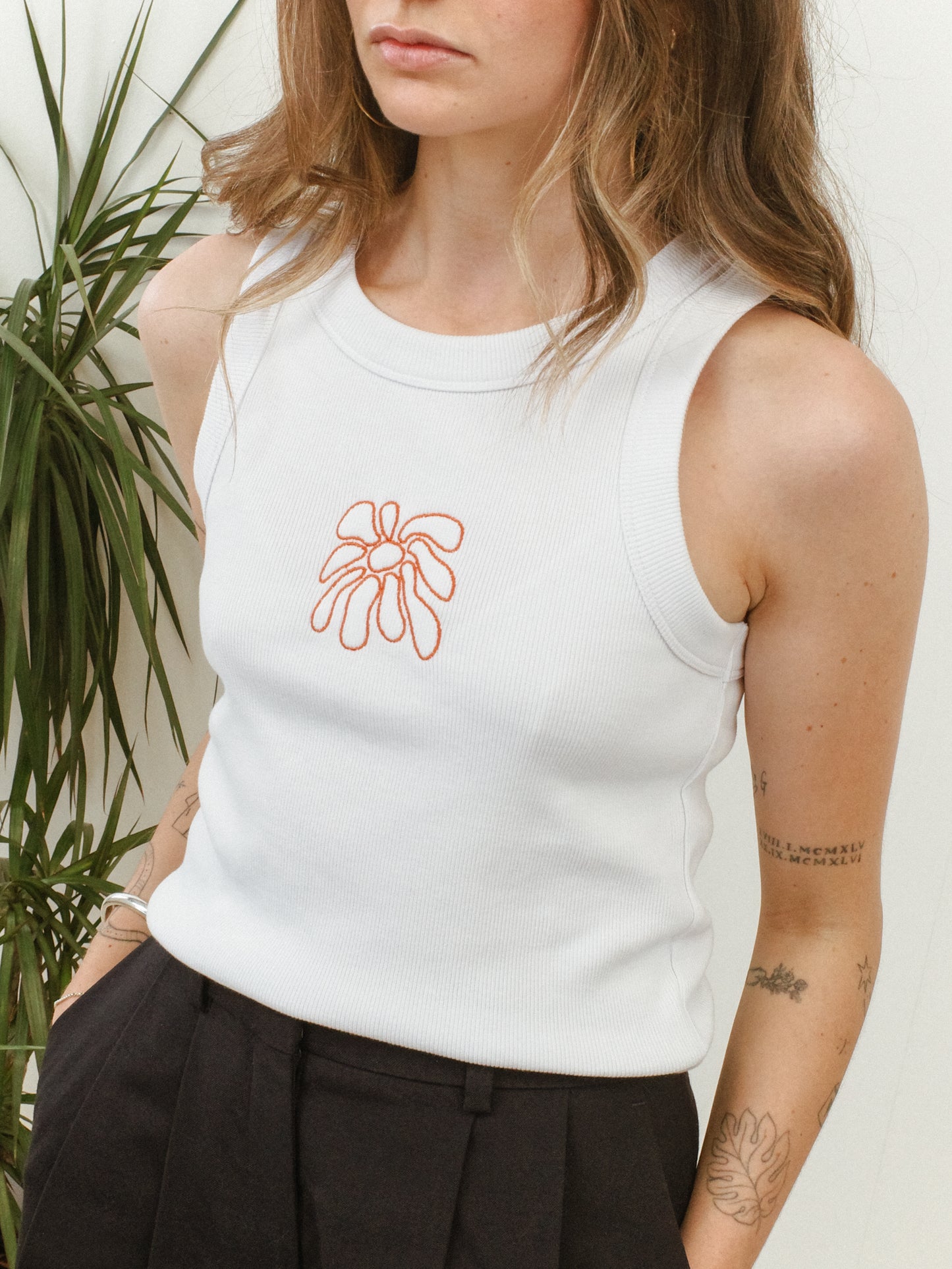 FLWRS Organic Embroidered Rib Tank - White