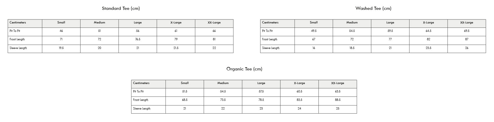 Size Charts