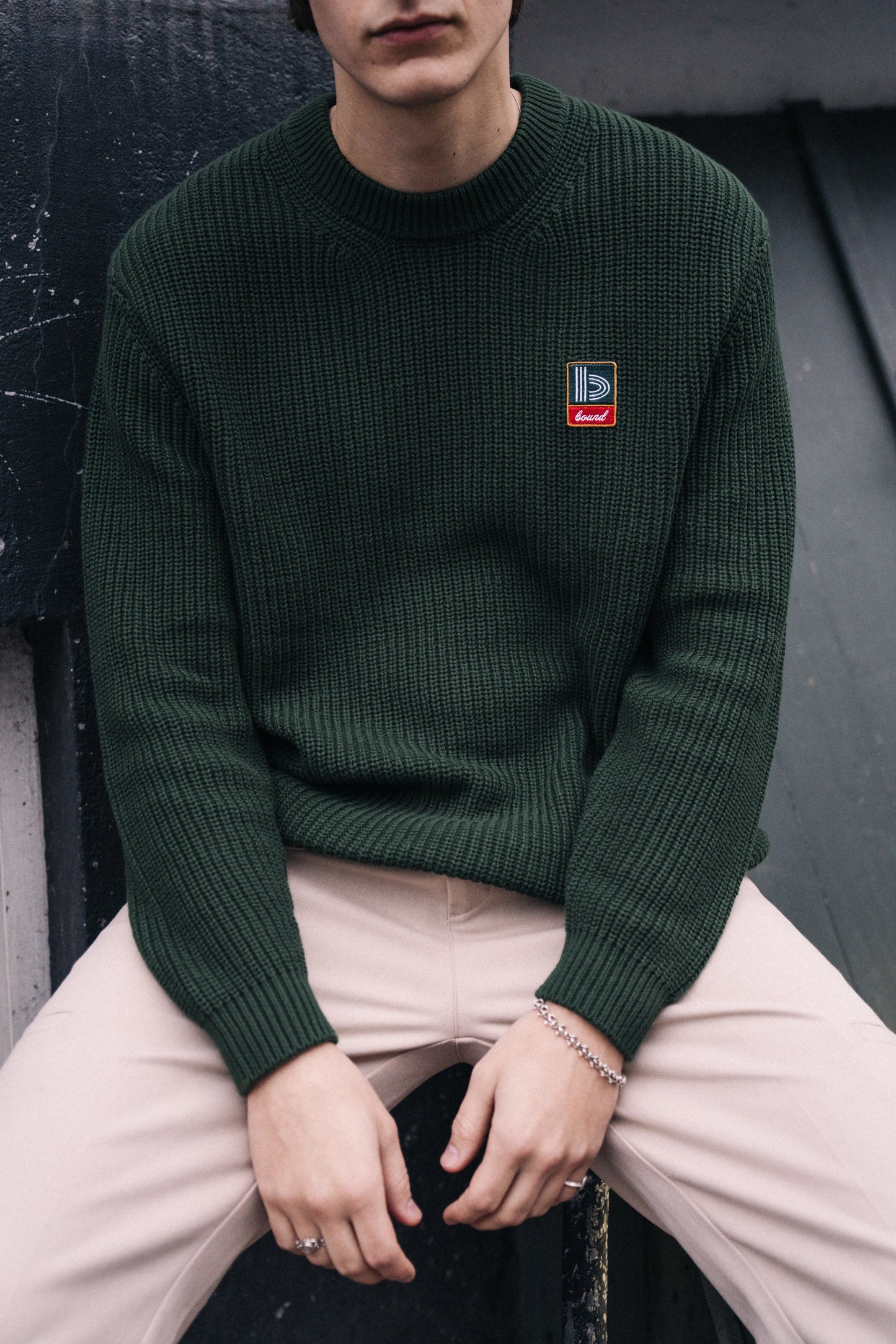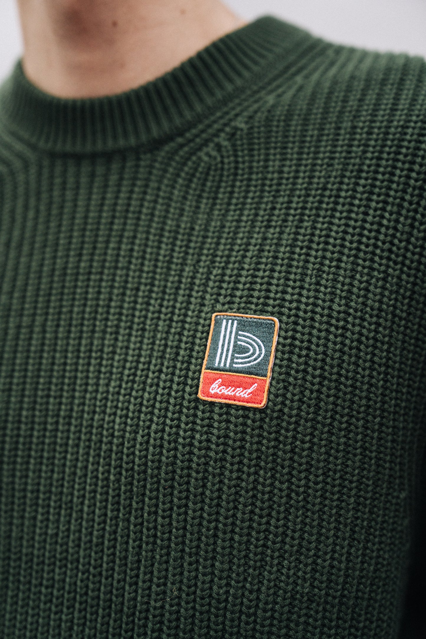 Our take on the classic 'Fisherman' constructed rib knit, with a new retro patch branding.
