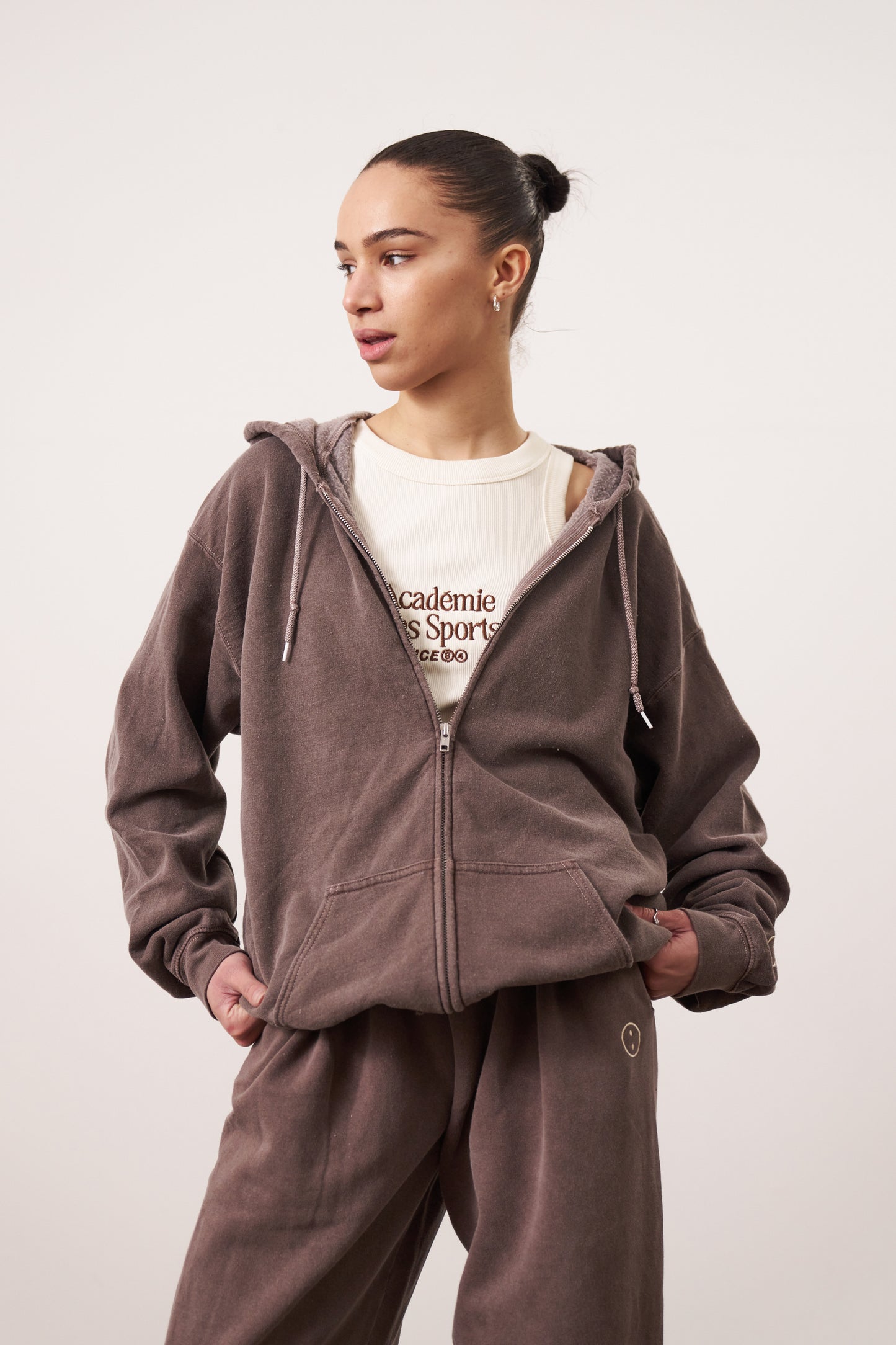 Essentials Vintage Washed Zip Up Hoodie - Cocoa